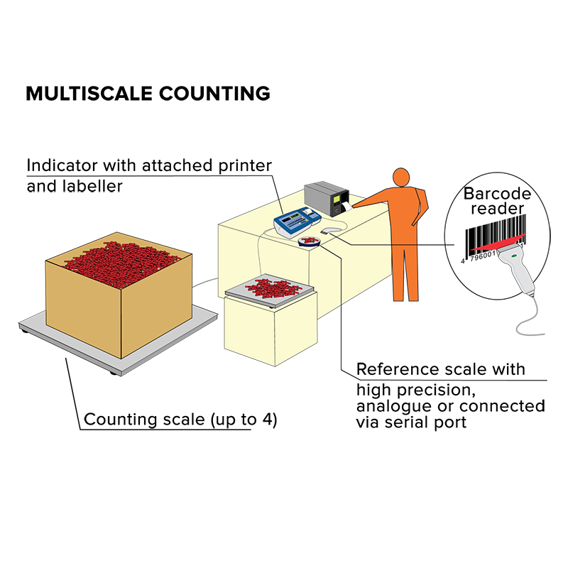 Suitable for counting applications and data management, with articles database, clients database and tares database and customisation printouts. Internal Counting Resolution up to 1.500.000 points. Up to 5 independent connectable scales. CE-M approvable (OIML R-76 / EN 45501).