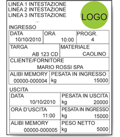 - Programmable printing from keyboard or from PC (through the free Dinitools.net software) of 30 print formats linkable to various functions (Print key, Input weigh, Output weigh, Single weigh, Partial total, General total, Grand total, Customer total, Article total, etc.); each print format can contain 2048 positions which may be direct ASCII codes or preset print blocks (i.e. Company name, weigh and lot progressive, net weight, memory storage number, customer description, article description, date and time, etc.).