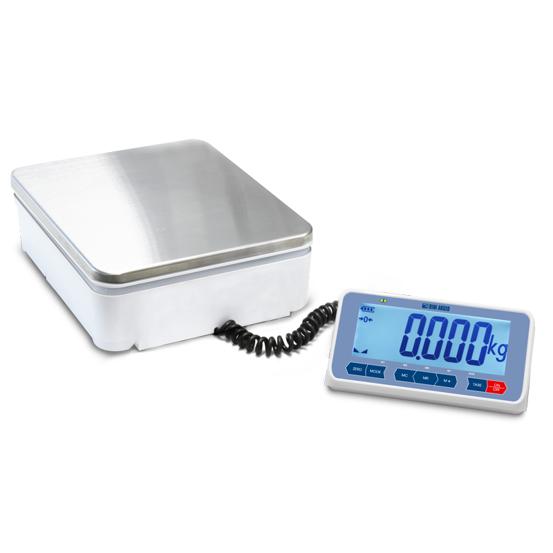 Multi-purpose very sturdy small-sized bench or floor scales, ideal for weighing packages, vegetable crates, and all kinds of objects, also on mobile carts; extensible cable, for the best positioning of the indicator.