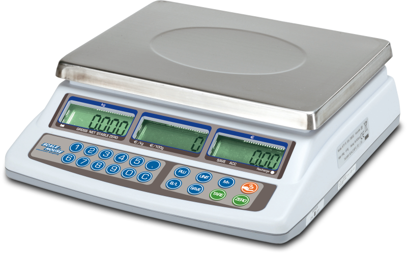 Compact dual range price computing scales for commercial use. Connectable to the printer, for amount totalization function. 10 PLU memory.