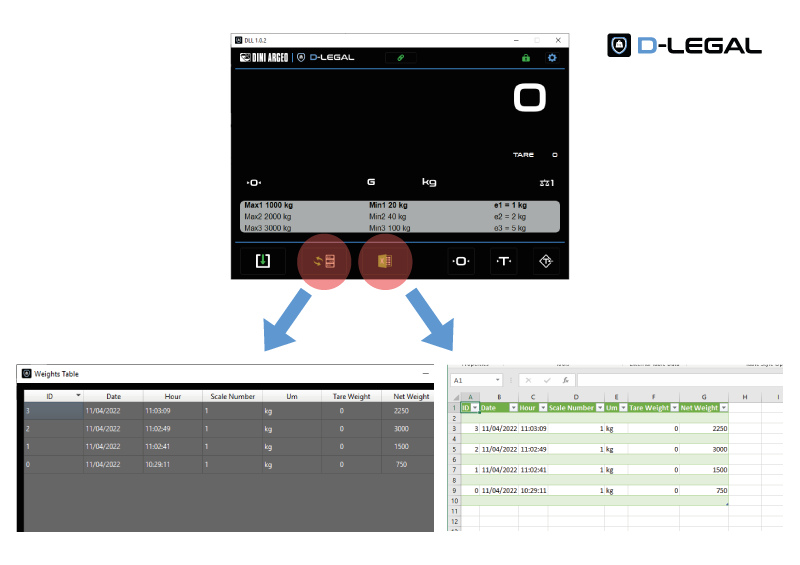 Using a virtual alibi memory for data storage, D-LEGAL can save approved weights in a single file on the PC. There is no memory limit and the data is easily accessible, searchable and can be exported to Excel.