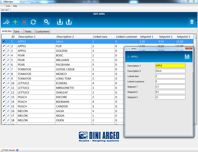 PC software which facilitates and speeds up the compiling of the scale's databases, with the possibility to import/export them in a Excel format.