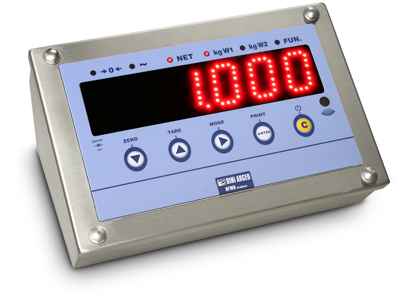 Digital weight indicator, with large and very bright and efficient, 40 mm red LED matrix display (SMD technology), easily visible from all angles, from long distances, and in full sunlight. Brightness intensity is easily adjustable through the software on PC. Its high performance and available programmes make it suitable for all industrial and commercial applications. CE-M approvable (OIML R-76 / EN 45501).