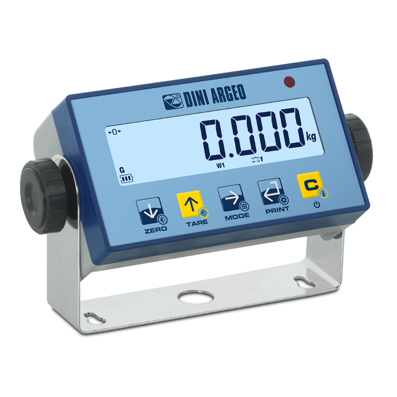 Digital weight indicator for industrial environments, easy to install and use. The IP68 protection degree and the built-in long life battery make it particularly suitable for automotive and mobile weighing applications. Standard fitted with a support bracket with adjustable inclination. CE-M approvable (OIML R-76 / EN 45501).