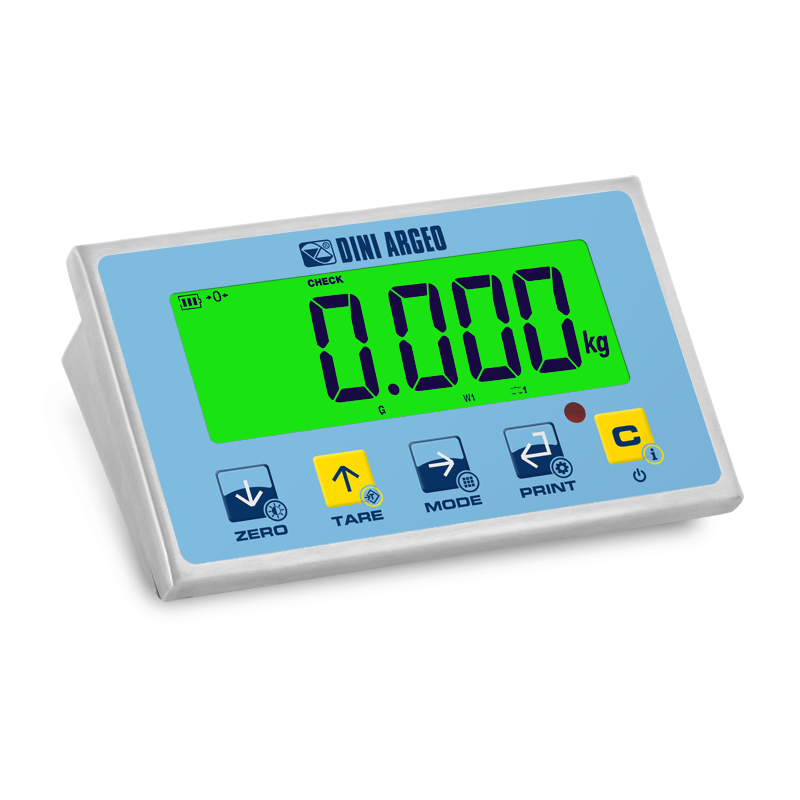 Easy to programme and use, versatile and high performing IP68 stainless steel weight indicator. The 40mm big colored backlit display gives a clear view of the weight and helps the user during the weighing operations. The wide range of available functions and interfaces make it suitable for multiple industrial and commercial weighing applications, such as floor scales,mobile weighing, etc. Fitted with built-in rechargeable battery. CE-M approvable (OIML R-76/EN 45501).