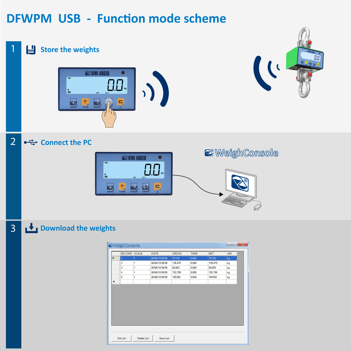 - DFWPM has to be coupled with scales or crane scales fitted with an optional radio module