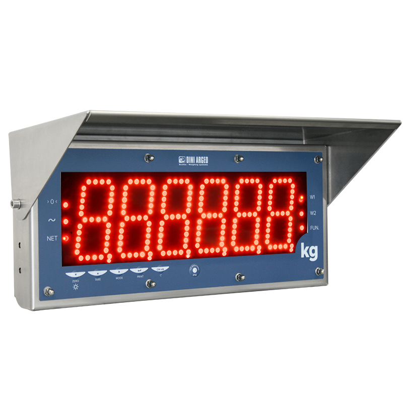 Weight indicator/ repeater with large matrix display composed of very intense bright LEDs. Particularly suitable for outdoor uses, it is clearly visible even in full sunlight and where it's necessary to view from a distance at any angle. Case completely in IP68 stainless steel.