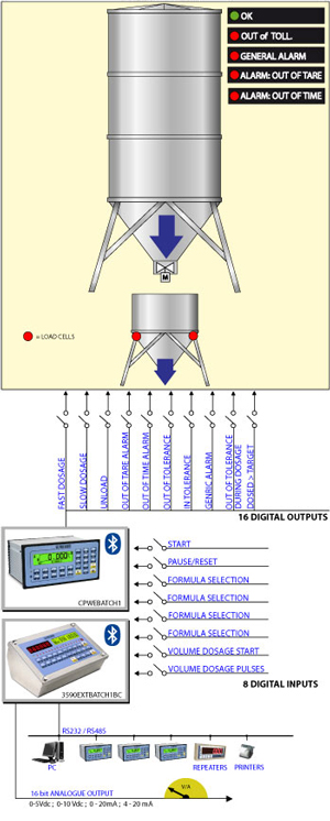 Software for 3590EXT and CPWE weight indicators, to create single product dosage systems in loading (useful for filling hoppers, silos or big bags, or guiding the operator in the manual dosages) and in unloading (useful for dividing the quantity of materials of equal weight or extract precise quantities from the silo, with management of the reloading). Database of 500 formulas.