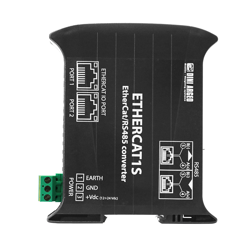 Technical Features: ETHERCAT slave port. ABS case for panel mounting on DIN bar. Suitable to work with DGT1S weight transmitter. Quick configuration from the transmitter programming menu. Serial port RS485 (from 9600 to 115200 baud), with "quick connect" system for a fast connection. Power source: 12-24Vdc.