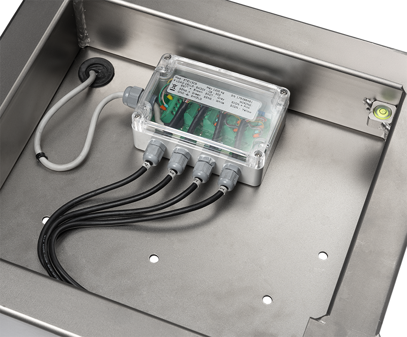 - Fitted with 4 stainless steel shear-beam OIML approved load cells each with 1000 Ohm input resistance with protection against dust and immersion according to IP68 standards