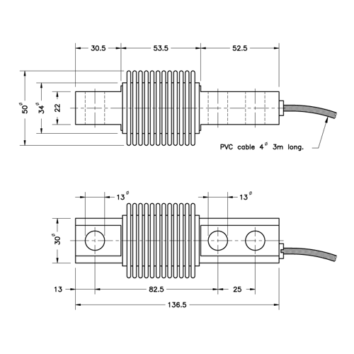 FXL50 | Bending beam approved load cell, C3, Max=50kg. Stainless steel, IP68/IP69K protection degree, 350 Ohm output resistance, with 25mm hole wheelbase. |