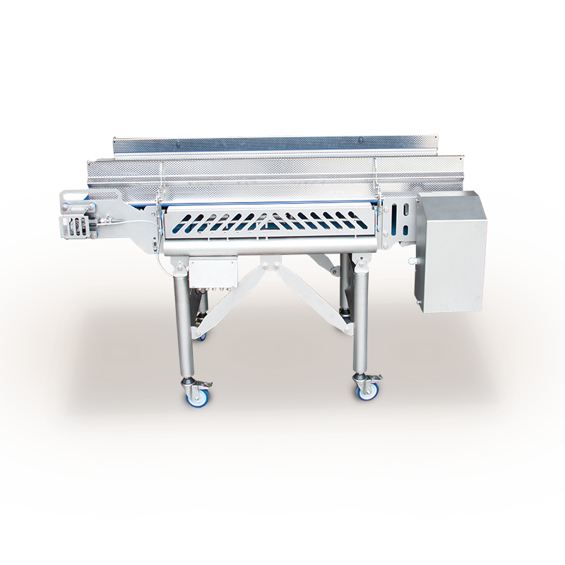 - Foldable side-boards and a flip-up tail drum create access to the complete conveyor internals, enabling a thorough washdown