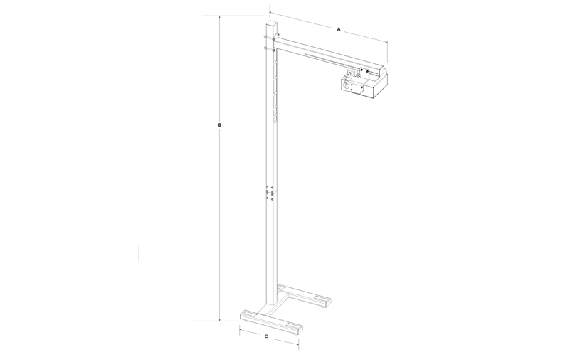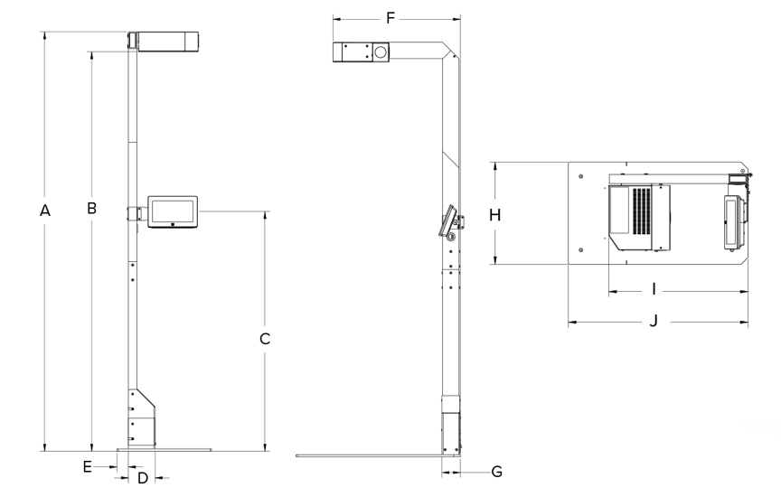 Optional iDimension Plus XL Floor Mount Stand Assembly Dimensions