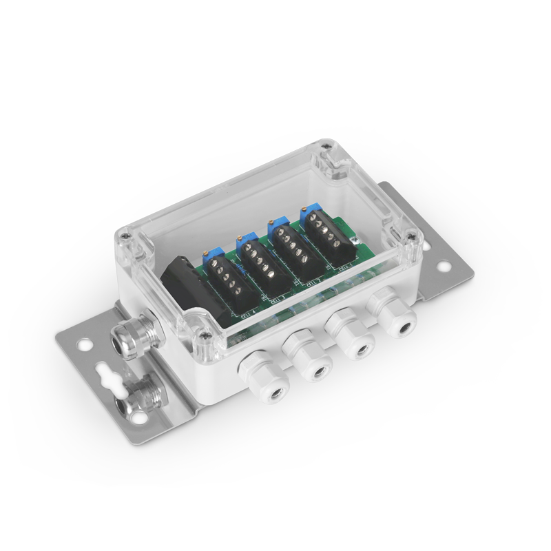 IP67 junction box fitted with electronic board for junction and equalisation of 2, 3, or 4 load cells. Terminal boards with a screw for easing the connection of the load cells and the signal adjustment trimmer, for an accurate and reliable equalisation. Marking: