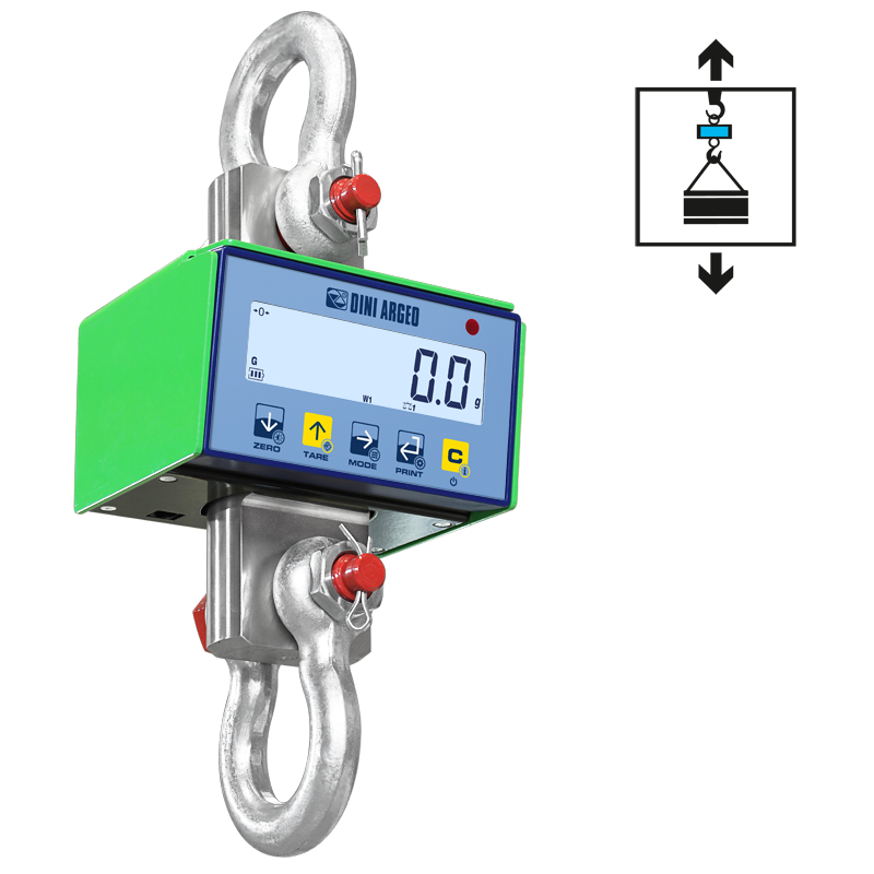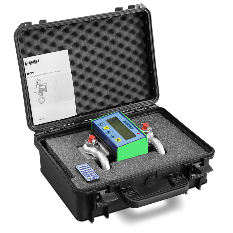 Easy to use and reliable professional digital crane scales, for weighing in industrial environments, fitted with protective transport case. The single security system makes them suitable for lifting and weighing the load. Thanks to their compact size, these crane scales just slightly reduce the lifting distance of the crane. Available also CE-M APPROVED. Fitted with test certificate obtained with standard weights.