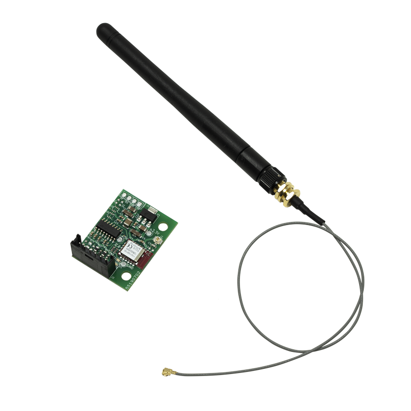 RF2G4-TTL | Integrated 2.4 GHz radio frequency module, complete of TTL port. Max. functioning distance in appropriate environmental and installation conditions: 45m indoors, 140m outdoors. Up to 39 configurable channels. (RF2G4-TTL must be combined with another radio module). |
