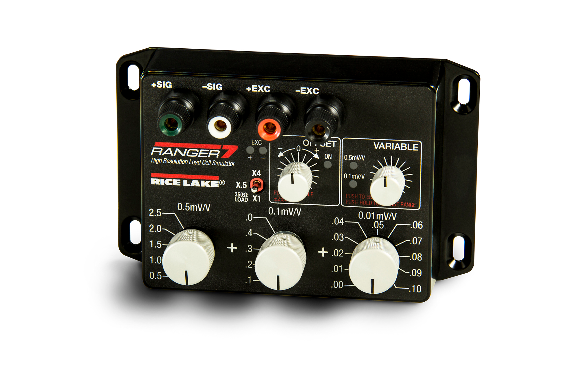 The Ranger 7 is the simulator of choice for precision testing. Designed for applications that require high resolutions, it features a switchable offset and two Vernier controls, along with switches that go down to 0.01 mV/V.