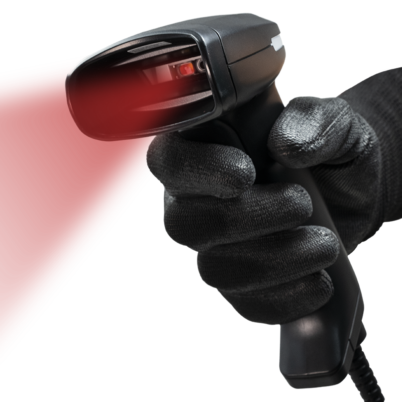 Gun type wired barcode scanner for use with 3590 TOUCH SCREEN series weight indicator. Manual operation via push button or automatic when installed on the base.