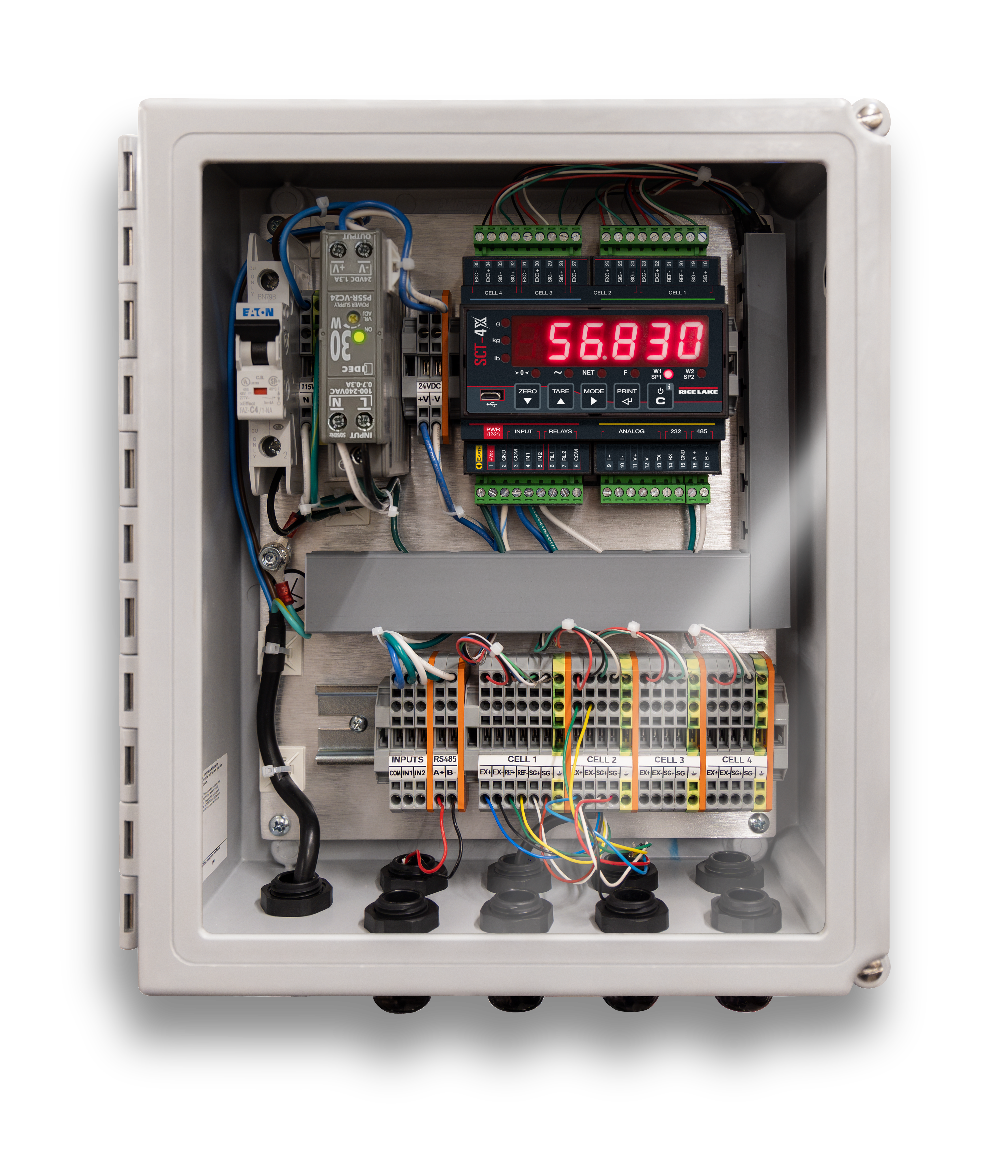 | 225172 | Indicator, SCT-4XDMB 4 channel weight transmitter with Belt Scale Integrator firmware and Modbus TCP. Digitizer only - no power supply or enclosure. |