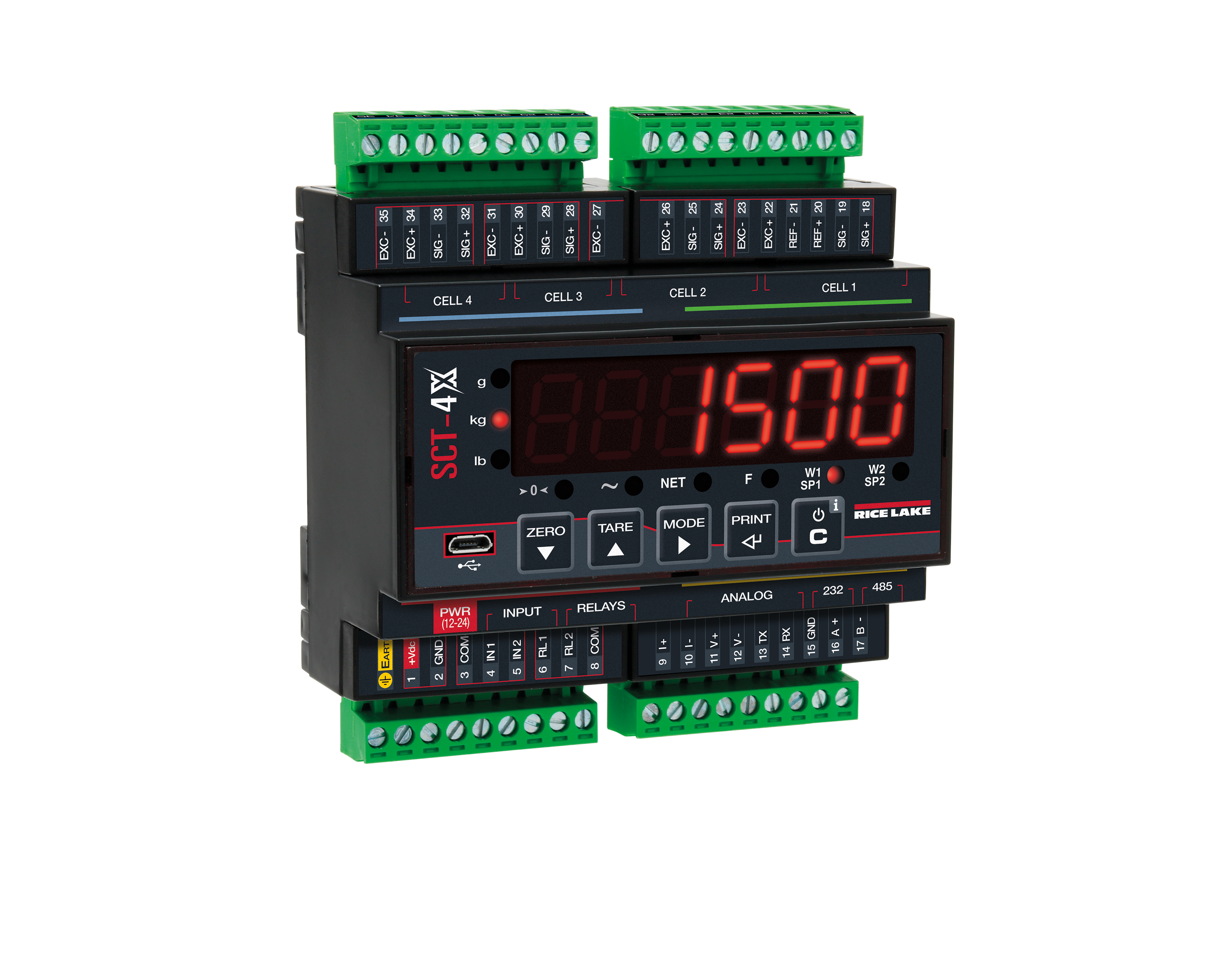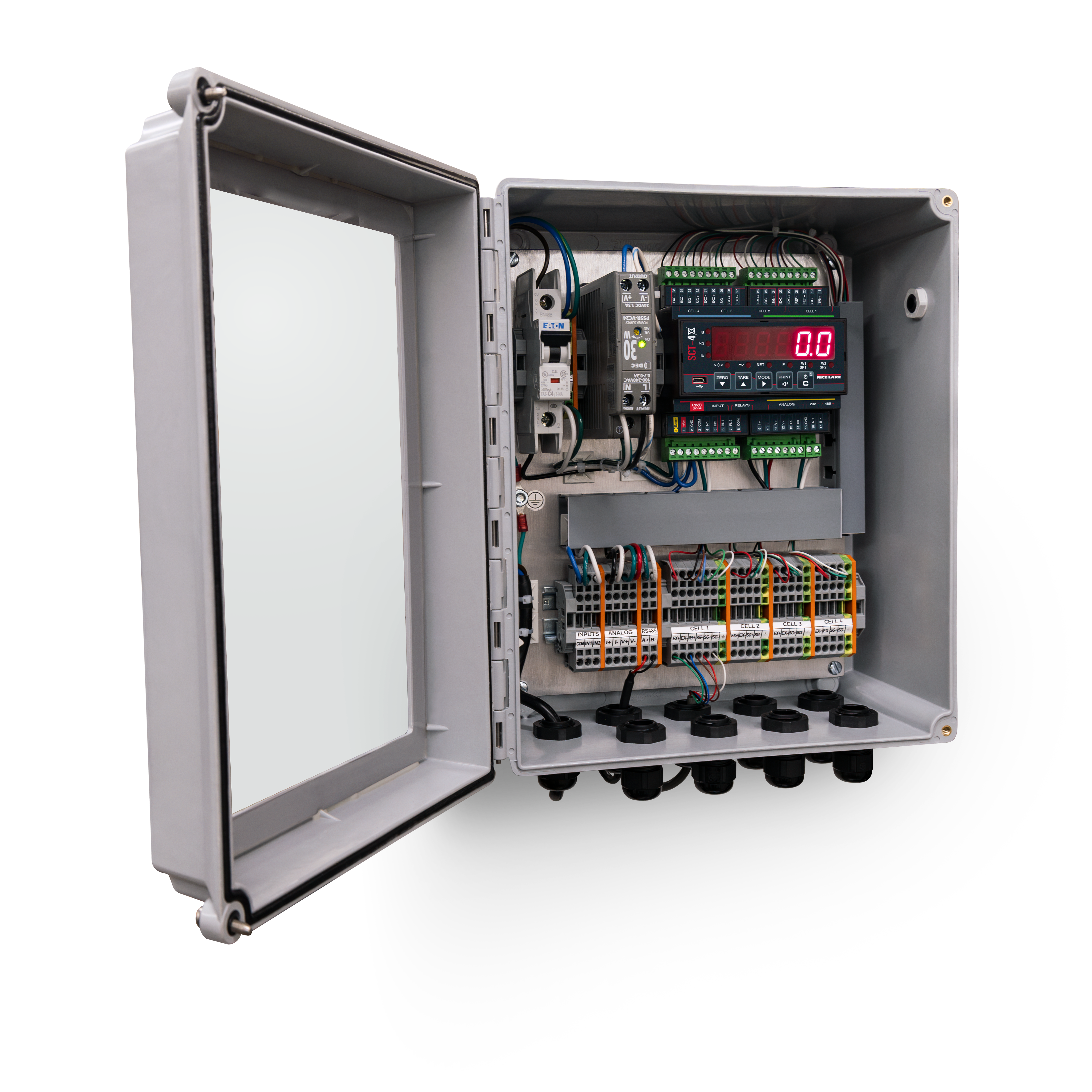 - Manage up to four load cells (one scale)