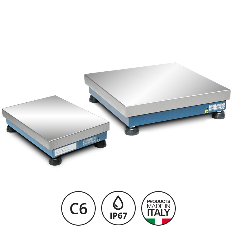 Small and medium capacity electronic platforms with a AISI304 stainless steel surface.