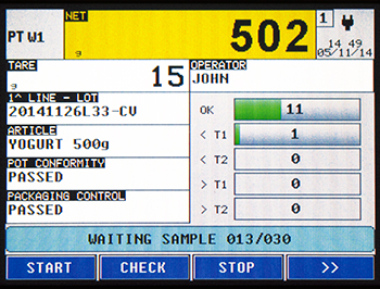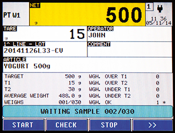 Standard version "AF01" for Totalization and Dosage, in loading/unloading, formulation; functioning as a PC terminal (data entry communication protocol); archive of 1000 articles; 200 customers/suppliers, 300 tares, 4 independent total levels that can be displayed and printed, bar code reading for article selection 15 configurable and printable ID texts (example: Code, lot ID, operator ID, shift number, etc.), A.C.W. (Automatic Calibration Warning) configurable automatic warning for periodical calibration check. Customizable printouts. Applications Thanks to the integrated development area, it is possible to create autonomously fully customized applications: