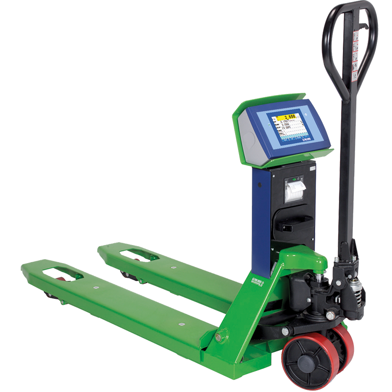 - This is the professional pallet truck scale equipped with a touch screen indicator, specifically for managing and communicating data with the main computer systems.