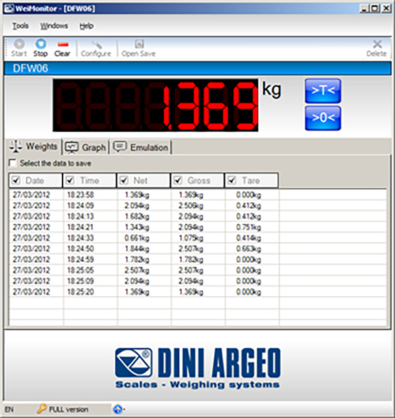 FREE software (if downloaded from the Internet) which allows you to monitor from PC the weight displayed by the DFW, 3590, DGT, DGTQ, DGT60, CPW, TRS, TRI series' weight indicators.