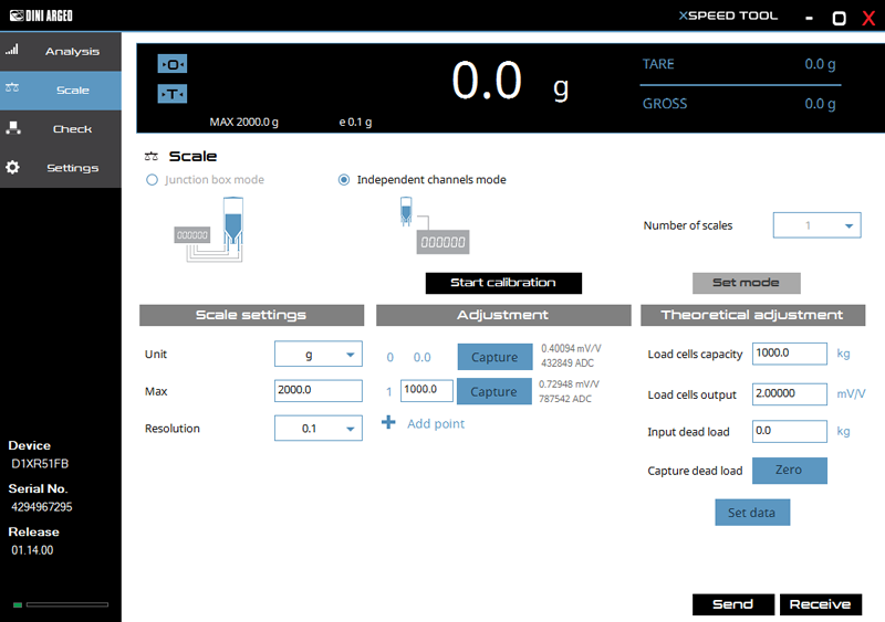 - Application of filters of your choice, fully configurable, to remove vibrations, oscillations, peaks etc., making the weight stable and the scale reactive and performing.