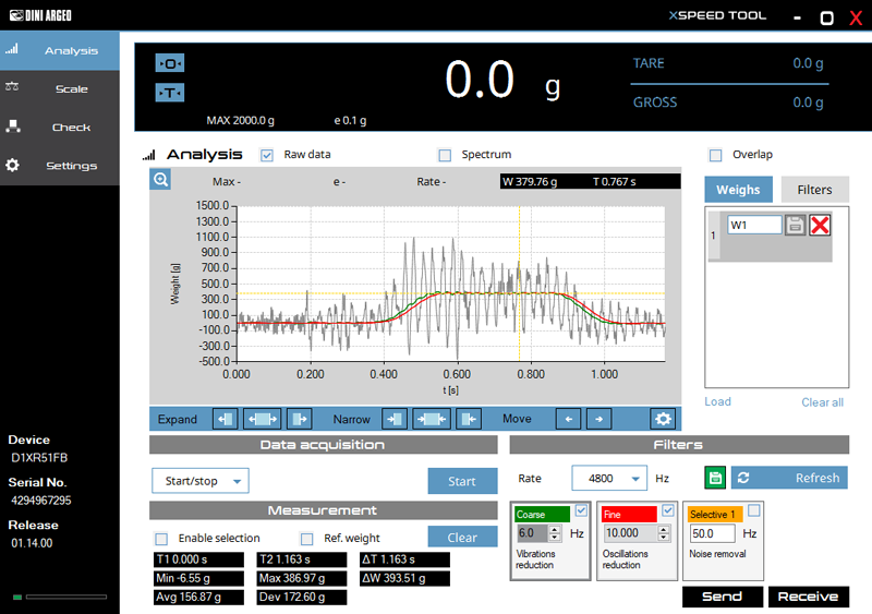 PC software that allows you to record the signal coming from the load cell in real time and process it by applying specific filters to remove vibrations, disturbance and noise. Indispensable to obtain precise and fast weighs in automated weighing systems.