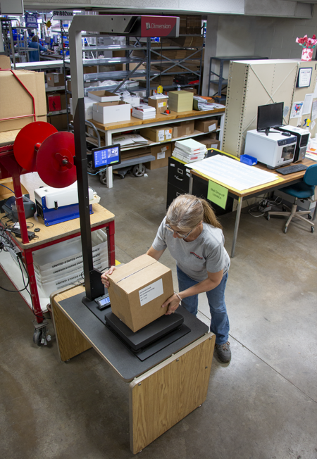iDimension Plus, connected to a Dini Argeo or Rice Lake scale, combines the benefits of a volumetric sensor with the accuracy of a scale. iDimension Plus records the aerial image of the object being placed on the platform and calculates its dimensional weight, sending the information to the 7-inch touchscreen display provided. The scale can also be connected to the weight indicators of the Dini Argeo range to manage the measurement data on both devices and transmit it to the company's computer system or printer/labeler.